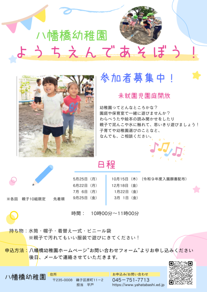 「ようちえんって、どんなところだろう?」親子であそびにきませんか?