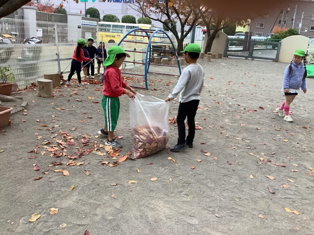 焼き芋体験を通して、煙のにおい、葉っぱの焼ける音、火のあたたかさ、炎の形・色の変化など