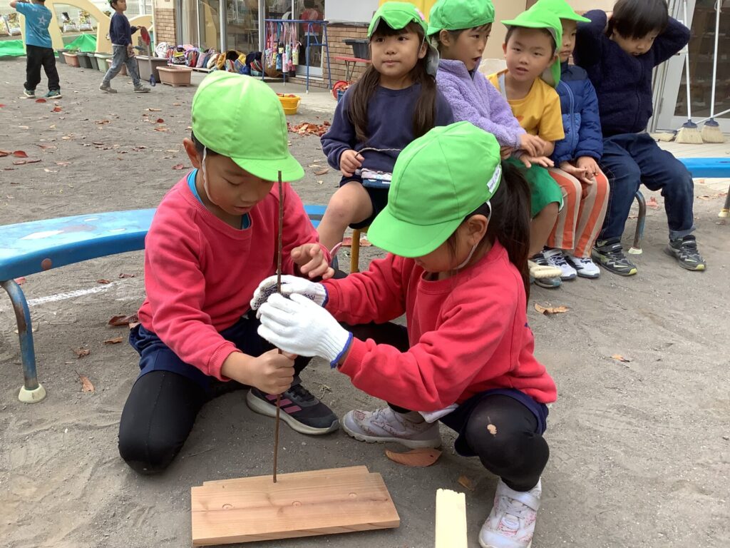 「どうやって焼く?」「焚き火で焼き芋を作りたい!」「どうやって火を起こす?」話し合う中で事務の職員に火起こしについて聞いてみることに・・・。
