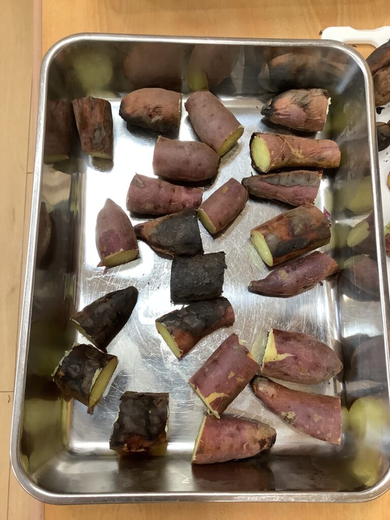 収穫したさつまいもをどうやって調理して食べるかを相談し焼き芋を作ることになりました。