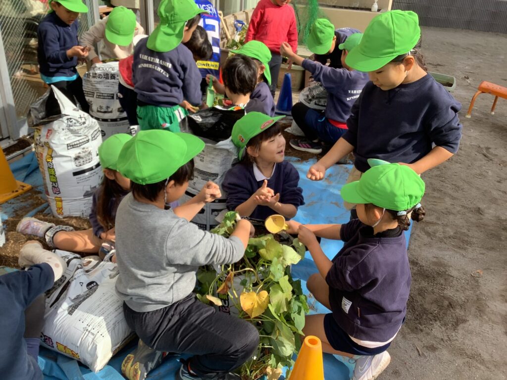 年長児が幼稚園の園庭でさつまいも栽培、収穫をしました。