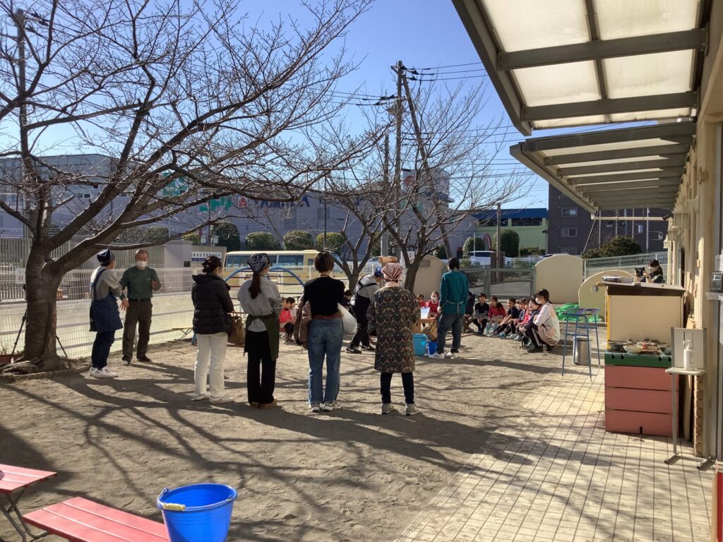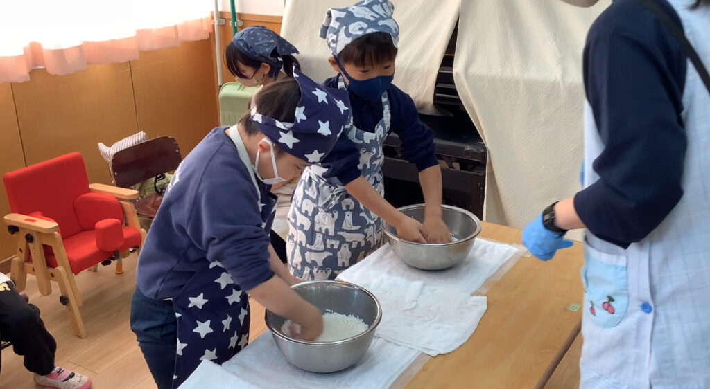 お父さん方には力強くおもちをついていただき、お母さん方には調理をお手伝いしていただきました。